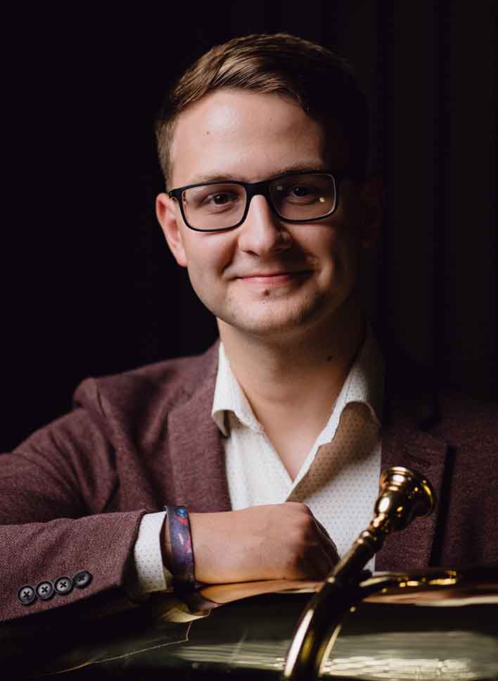 In his spare time he is very enthusiastic about the history of the tuba and its instruments. Many of these rare instruments are in his private collection. At the beginning of 2021, his tuba book "Total - Tuba" will be published by a well-known publishing house, containing 31 exercises by himself and international tuba players and professors. Daniel Ridder continues his education in workshops, master classes and professional brass ensembles, e.g. the WDR Brass Band Cologne.
